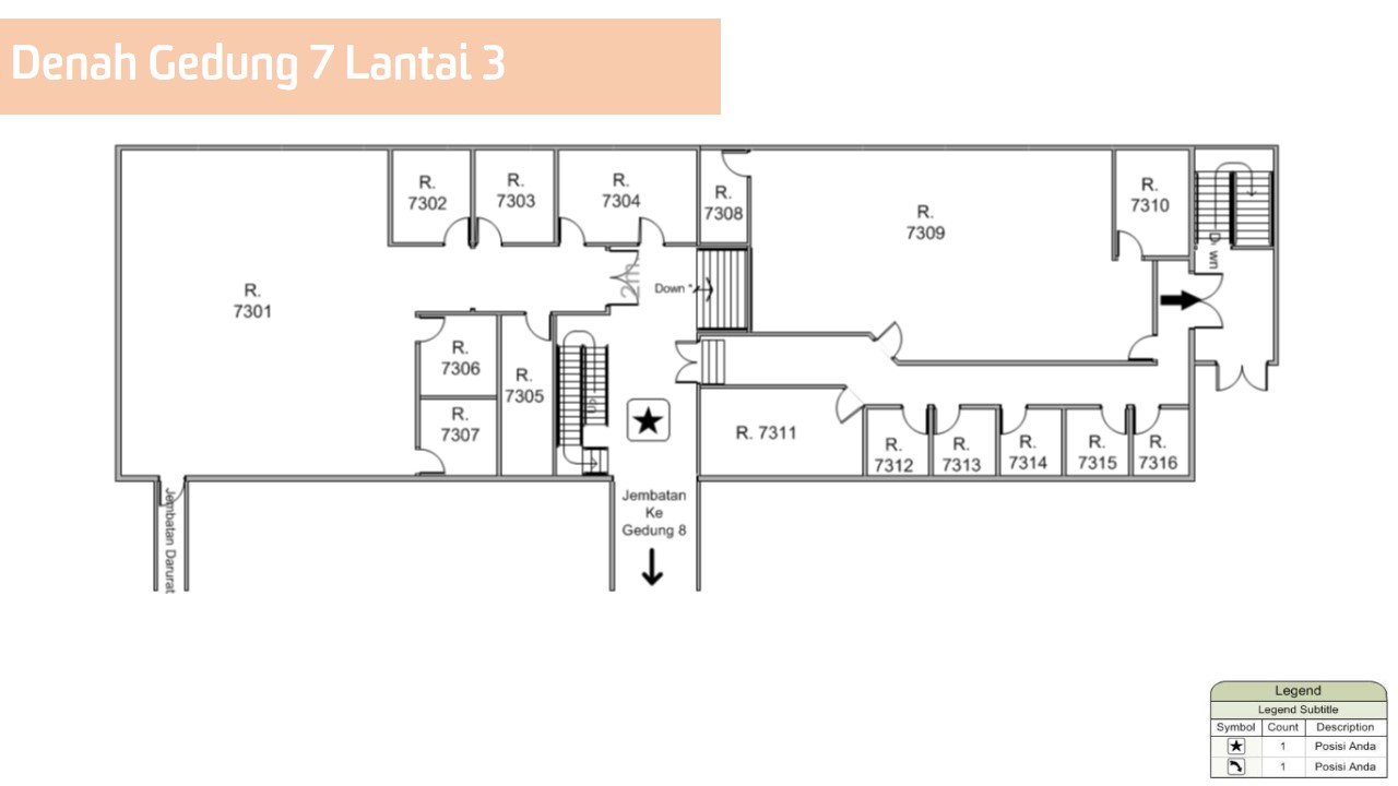 7309 | Laboratorium Komputasi I | 7310 | Ruang Teknisi Laboratorium Komputasi |