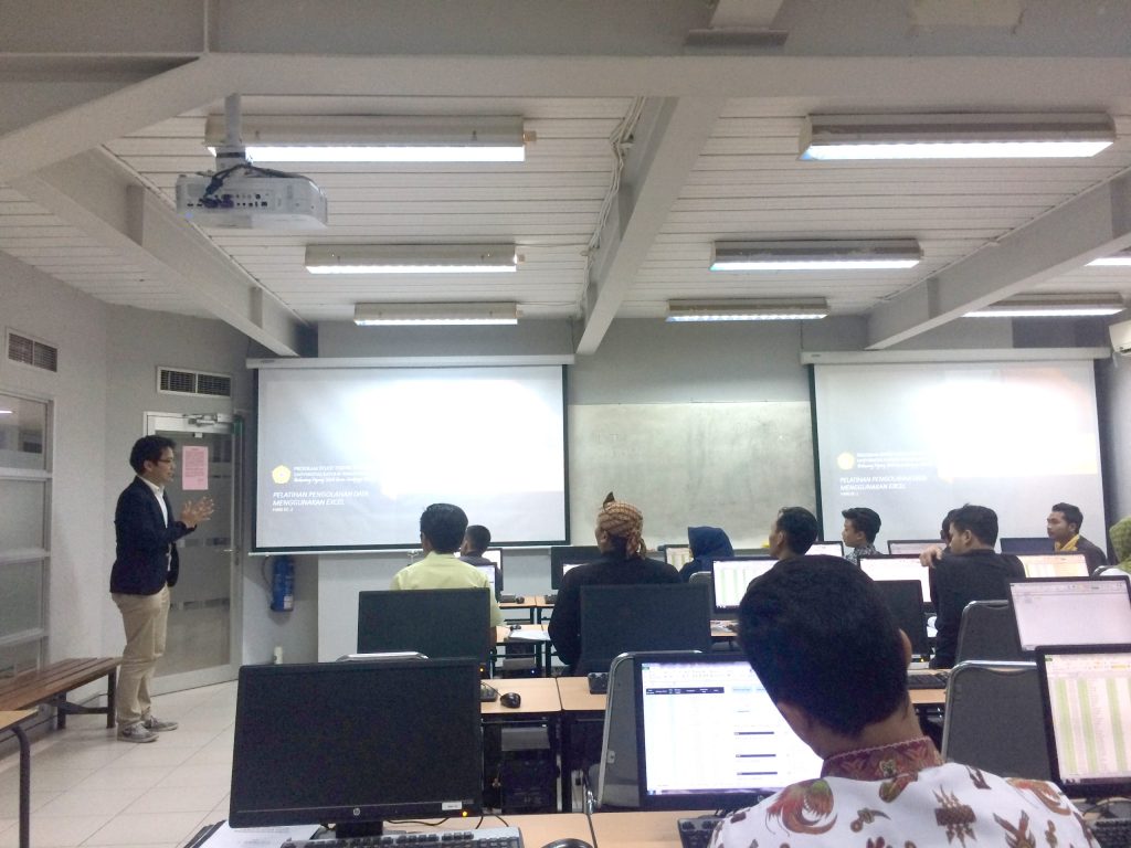 Program Studi Teknik Industri Universitas Katolik Parahyangan mengadakan pelatihan Pengolahan Data Menggunakan Microsoft Excel bagi masyarakat sekitar pada hari Selasa, 23 Mei 2017 sampai dengan Rabu, 24 Mei 2017 di Laboratorium Komputasi I, Fakultas Teknologi Industri. Pelatihan ini diberikan kepada pegawai di beberapa kecamatan dan kelurahan di kota Bandung. Pelatihan ini diikuti oleh dua puluh orang yang berasal dari Kecamatan Bandung Kulon, Kelurahan Caringin, Kelurahan Warung Muncang, Kelurahan Cijerah, Kelurahan Gempol Sari, Kelurahan CIbuntu, Kelurahan Hegarmanah, Kelurahan Ciumbuleuit, Kelurahan Ledeng, dan Kecamatan Cidadap. Pemateri pada pelatihan ini adalah Ignatius A. Sandy, S.Si., M.T. dan Hanky Fransiscus, S.T., M.T. yang merupakan dosen di Program Studi Teknik Industri UNPAR. Pemateri dibantu oleh empat orang fasilitator yang juga merupakan dosen Program Studi Teknik Industri UNPAR, yaitu Marihot Nainggolan, S.T., M.T., M.S., Paulina Kus Ariningsih, S.T., M.Sc., Alfian, S.T., M.T., dan Dr. Sugih Sudharma Tjandra, S.T., M.Si. Materi yang diberikan mulai dari penggunaan operasi hitung, fungsi hitung dan lookup, sampai dengan penyajian data dalam grafik.